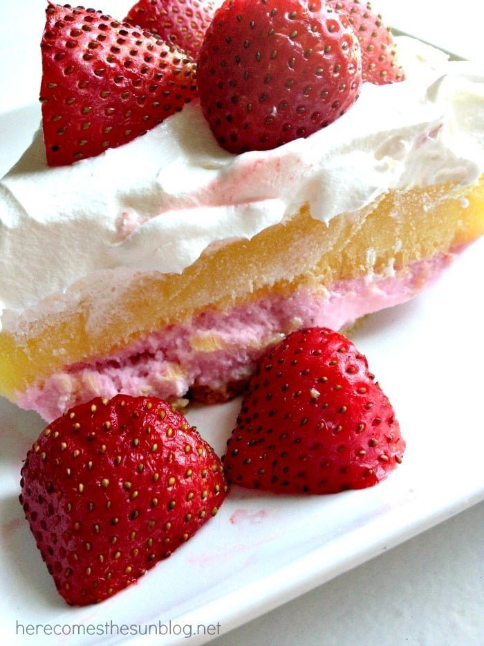 This easy to make No Bake Strawberry Dreamsicle Pie recipe made with a graham cracker crust, Cool Whip, strawberry jello, cream cheese and more. It’s creamy, fresh and light, making it a perfect summer dessert.